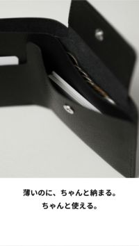 コインとカード、またコイン収納の蓋とカードの取り出し口までぴたりと収まる設計なので、中身が増えても厚くなりません。