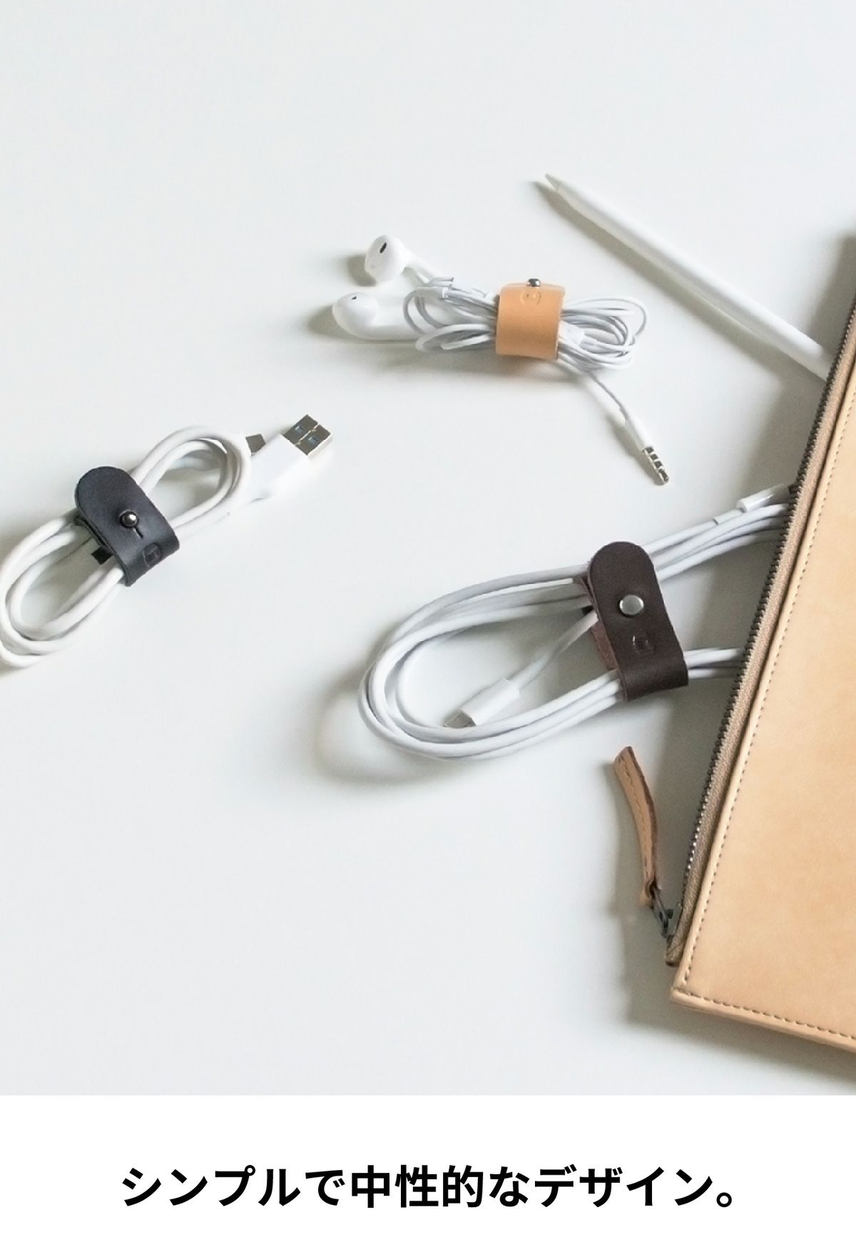 太さや長さにかかわらず、また色々な留め方でコードをまとめられます。