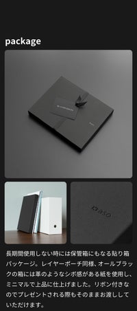 オールブラックの箱には革のようなシボ感がある紙を使用し、ミニマルで上品に仕上げました。