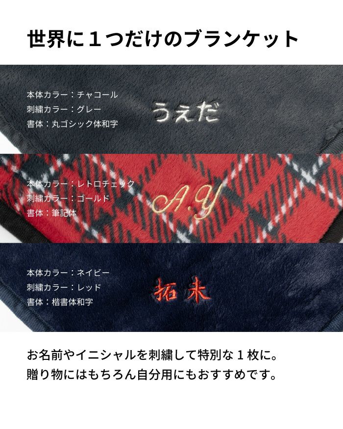 他の画像を見る 保温性が高くやわらかな刺繍入りブランケット お名前刺繍 ブランケット 名入れ 刺繍 MONOブランケット 軽量 保温 ふわふわ kt-g312na 名入れ可 ¥ 2,980 税込 〜 ¥ 税込 (0) 詳細を見る お気に入りに登録する