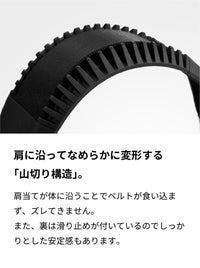 肩当てが体に沿うことでベルトが食い込まず、ズレてきません。