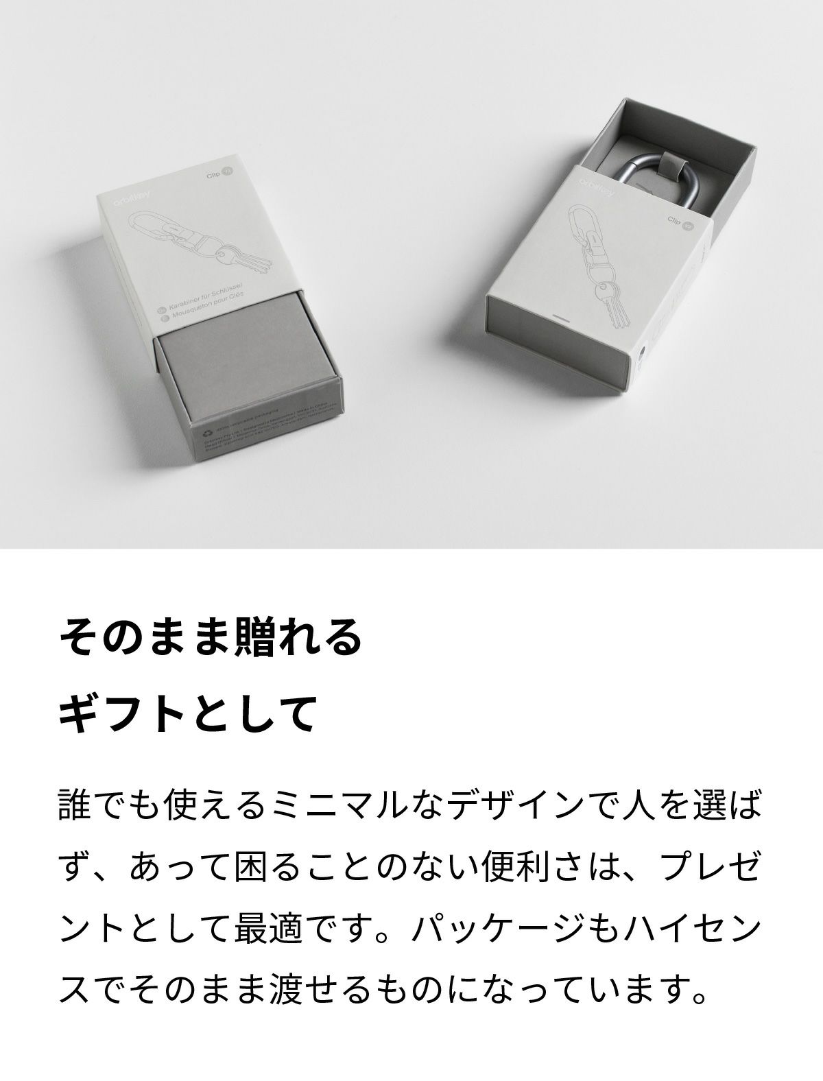 誰でも使えるミニマルなデザインで人を選ばず、あって困ることのない便利さは、プレゼントとして最適です。パッケージもハイセンスでそのまま渡せるものになっています。
