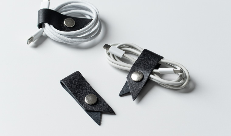 床革(革の表面を削いだ革)を使用したコードリールです。充電コードやイヤホンをすっきりとまとめられます。※カラーの指定はできません。予めご了承下さい。