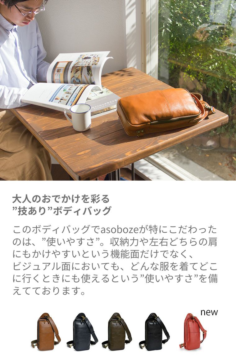 他の画像を見る 大人のカジュアルを追求したボディバッグ ボディバッグ 本革 CH-P123 本革 販売価格 ¥ 16,800 税込 会員限定価格 ¥ 16,700 税込 5.00 (4) カートに入れる お気に入りに登録する