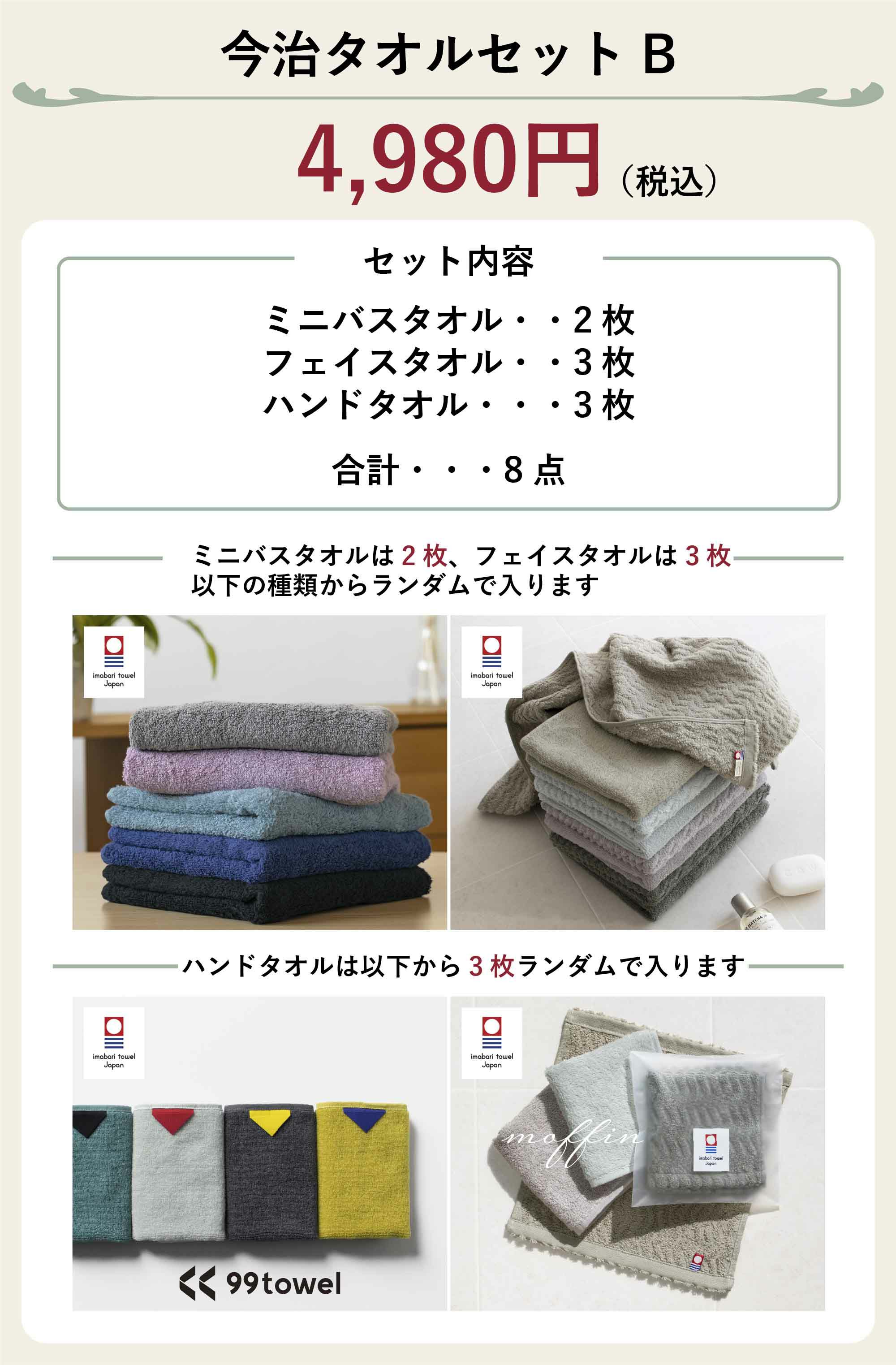 他の画像を見る すべて今治タオル!豪華なお楽しみタオル福袋! 今治タオル福袋 今治 ハンカチ ハンドタオル フェイスタオル ミニバスタオル ¥ 2,980 税込 (0) 詳細を見る お気に入りに登録する