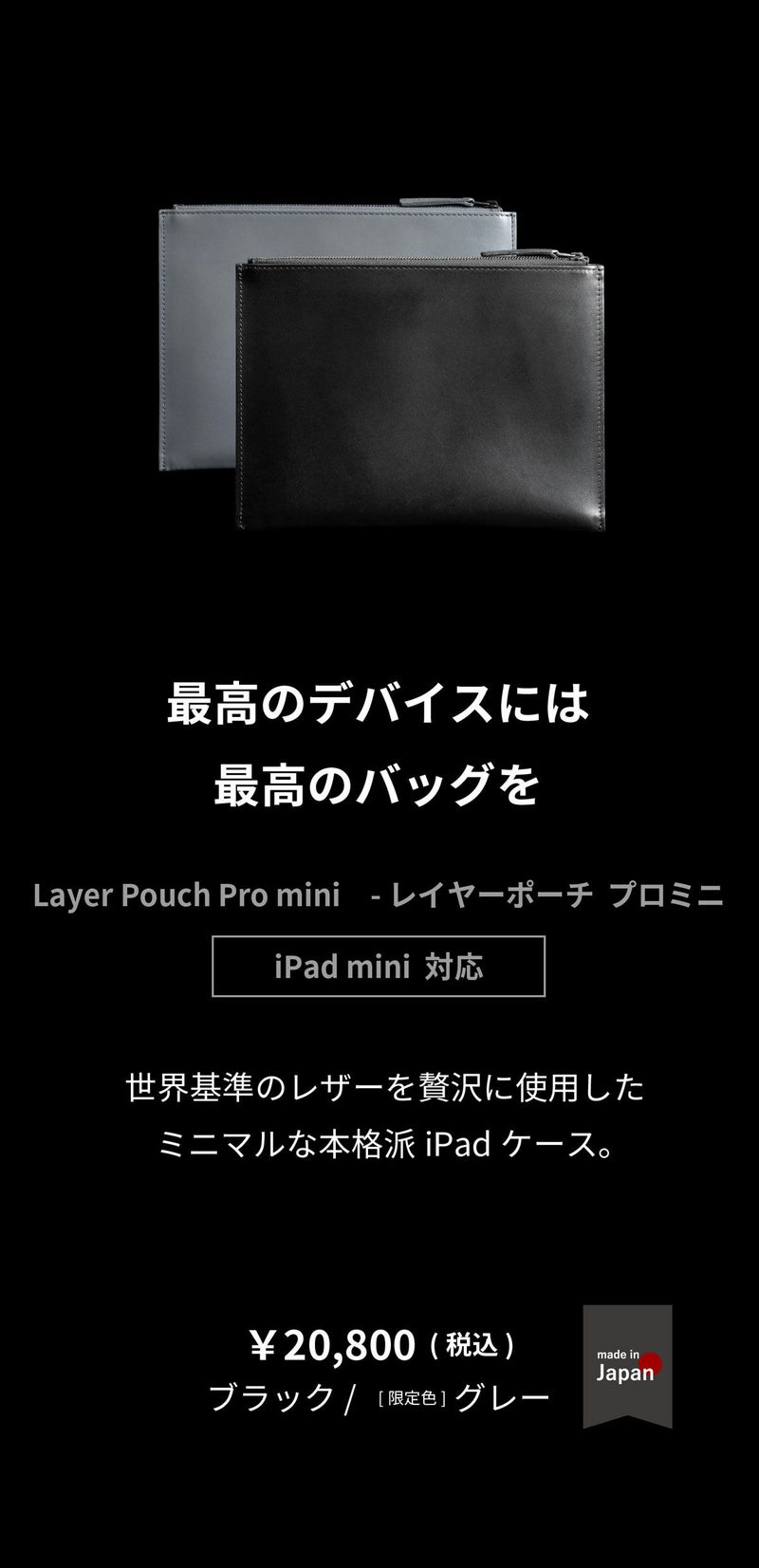 他の画像を見る iPad miniの持ち歩きに特化した専用ポーチ Layer Pouch Pro mini レイヤーポーチ プロ ミニ lp-w199 iPad対応 日本製 ¥ 20,800 税込 会員限定価格 ¥ 20,700 税込 (0) カートに入れる お気に入りに登録する